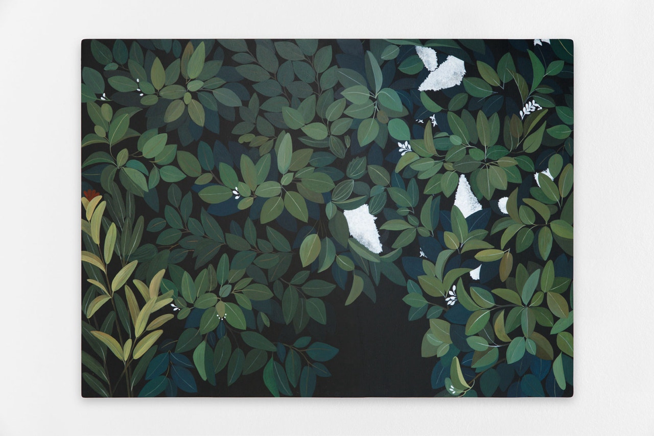 Feuillages 3, 2024, Acrylic and oil on wood panel, 73 x 100cm.