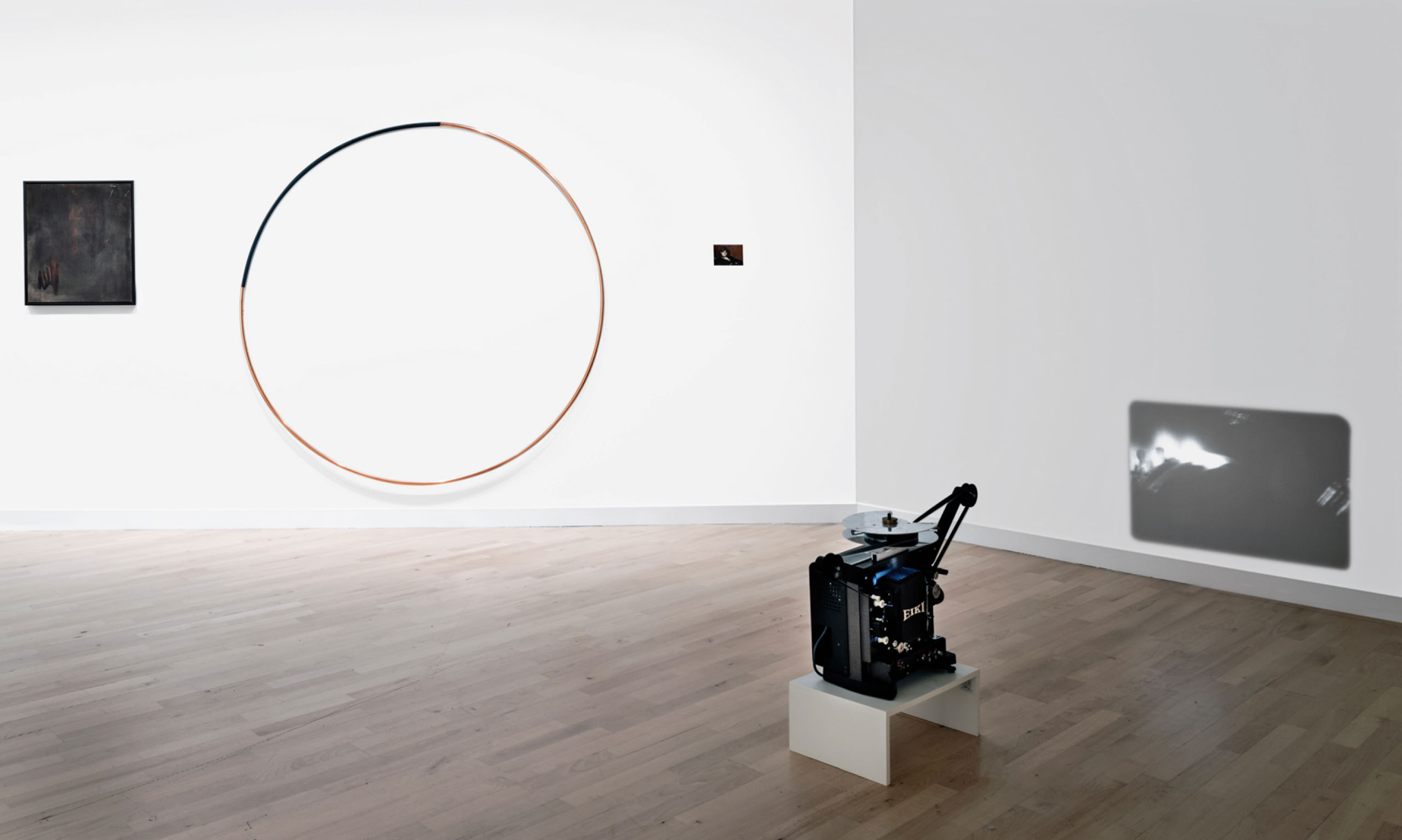 Vue de l’exposition avec la projection du film 16 mm Les jumeaux, 2011, boucle de 3 minutes, réalisé au Musée d’Archéologie de Naples