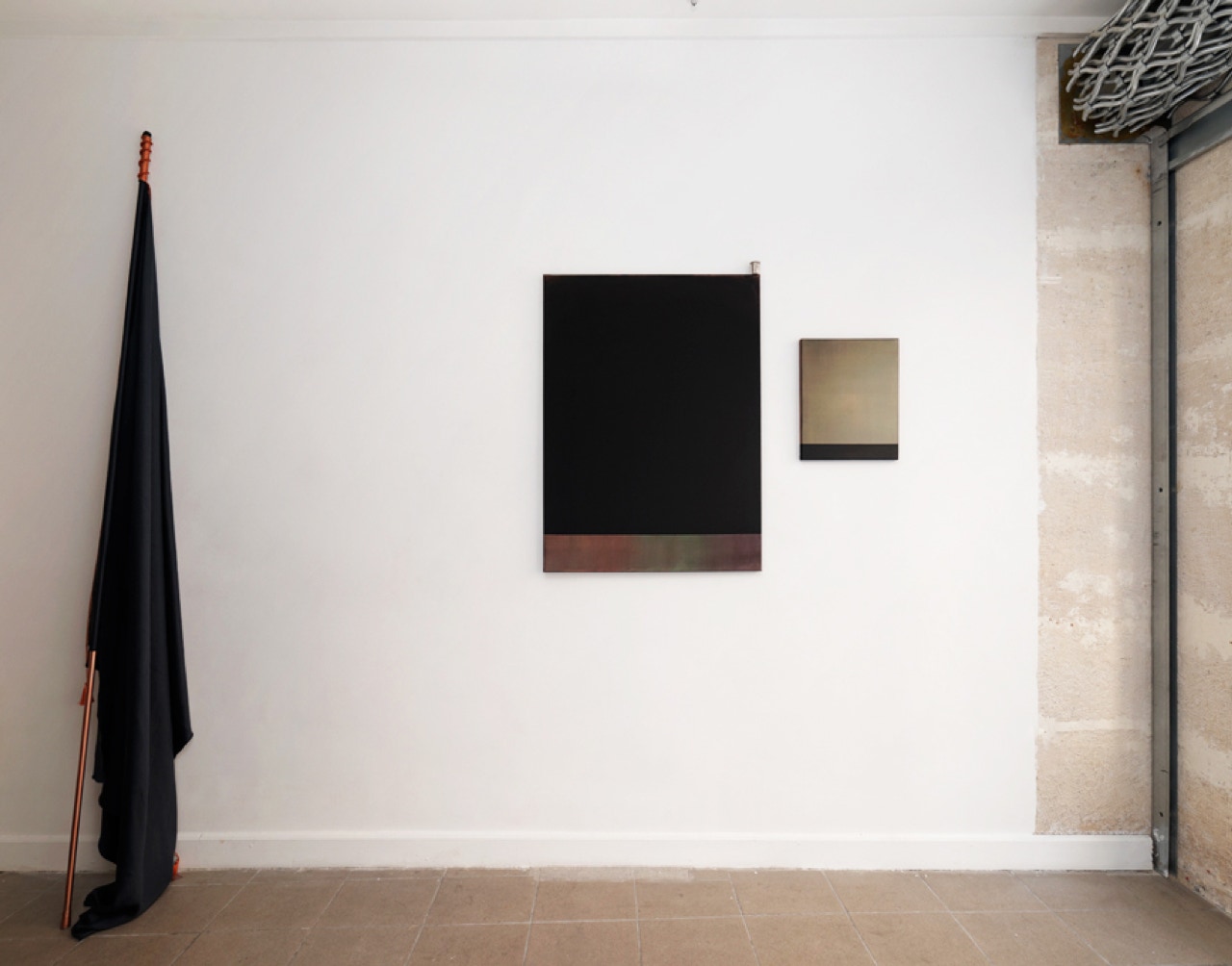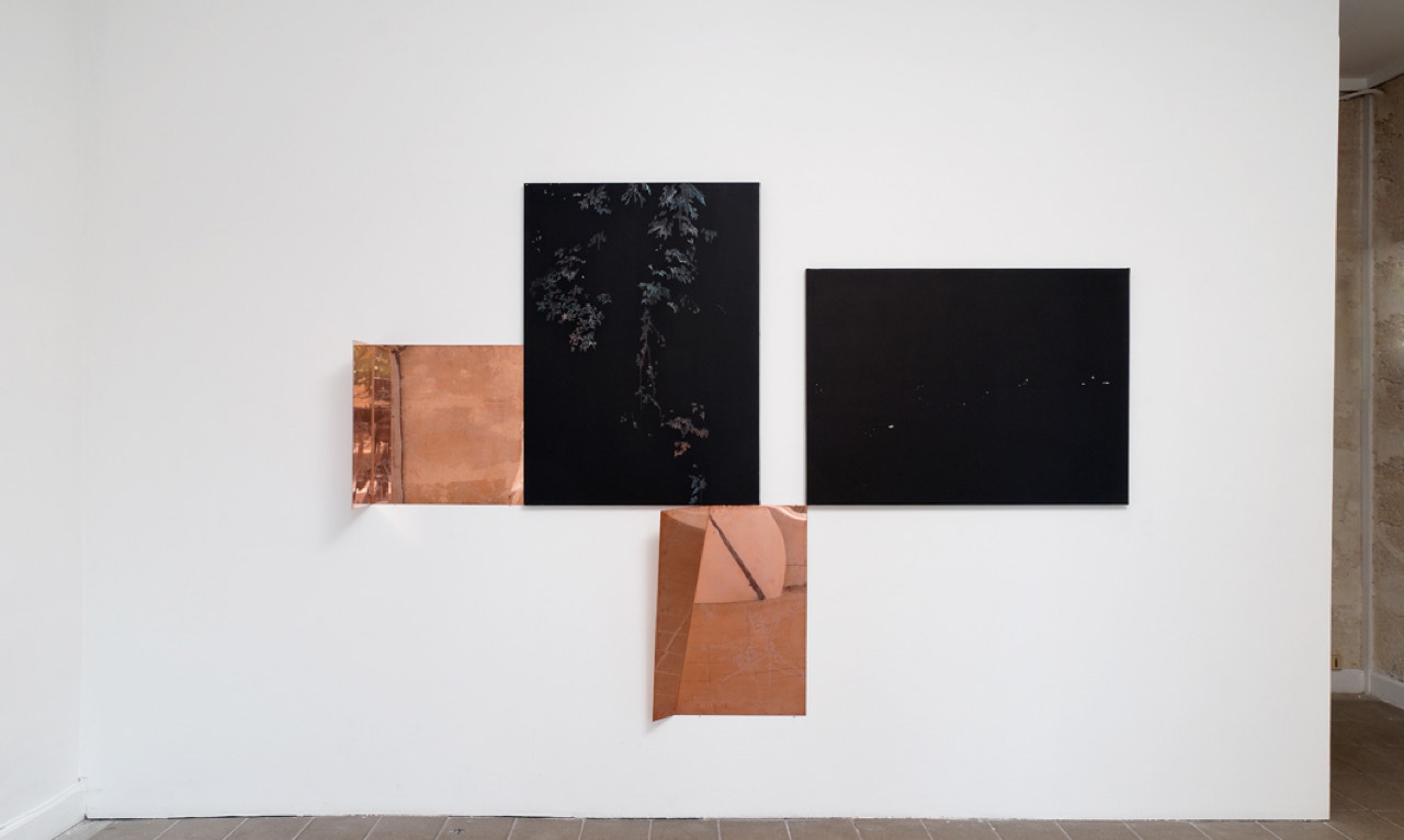 Composition with two copper folded sheets.