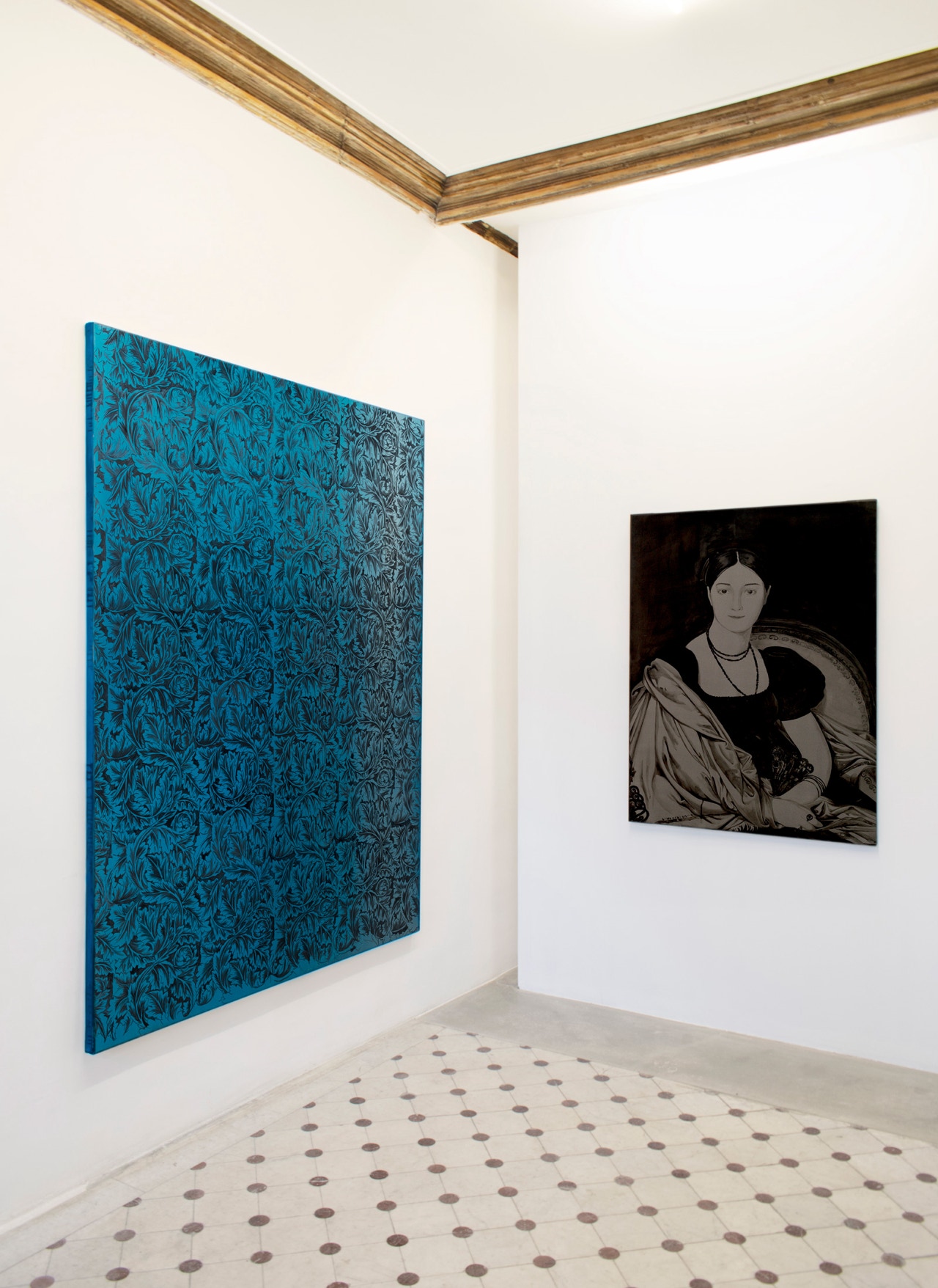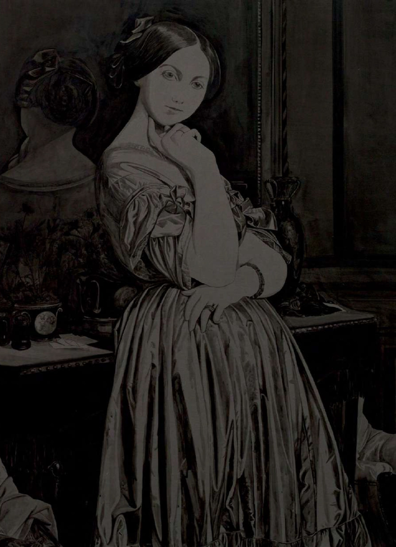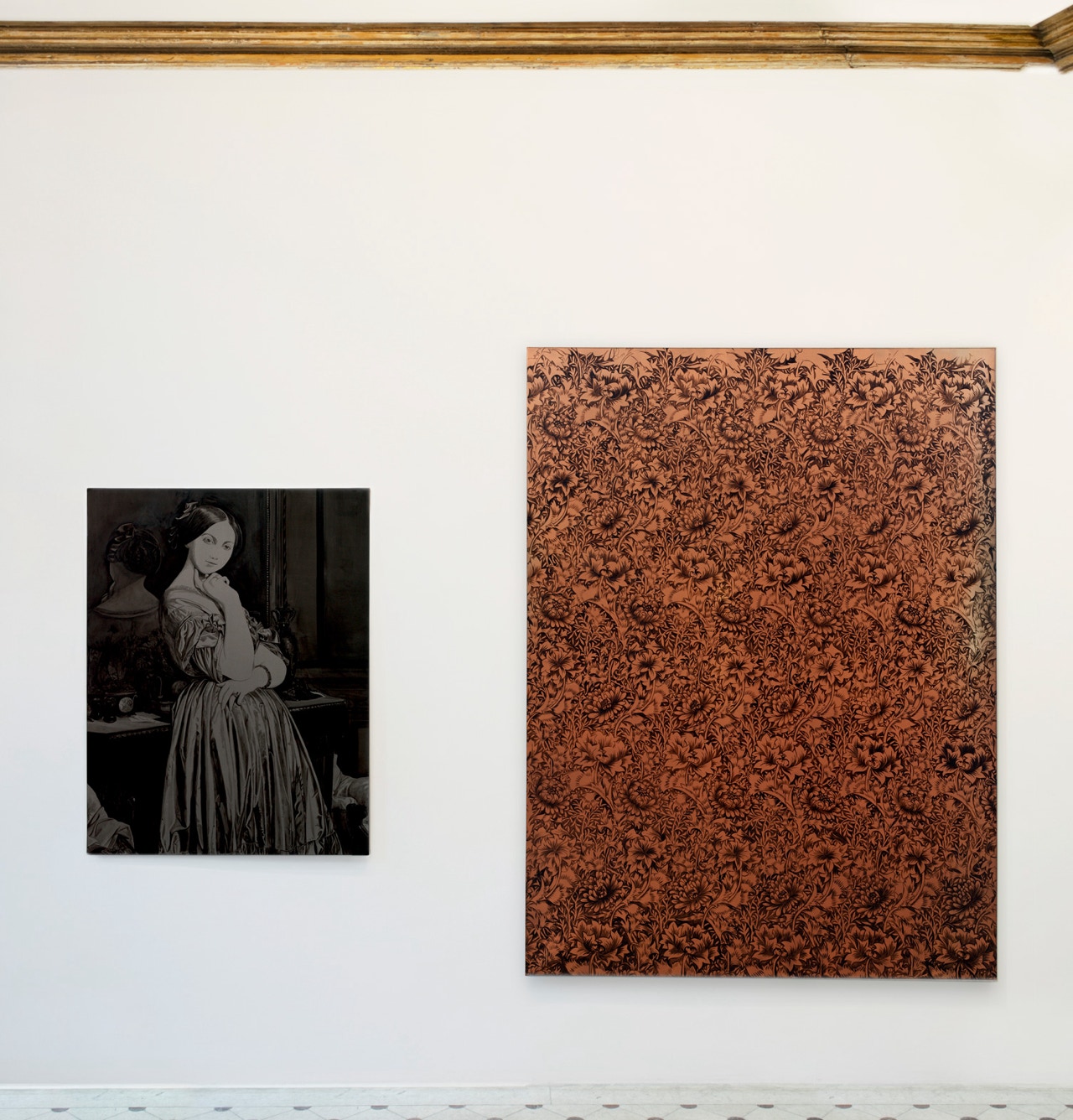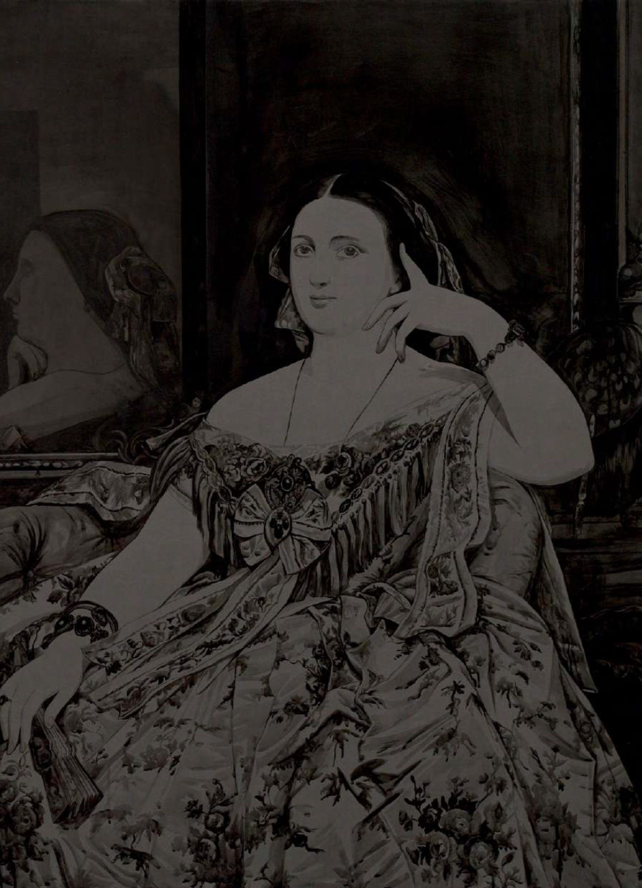Madame Moitessier, 2020-2024, Acrylic on iridescent canvas, 120 x 92 cm +
