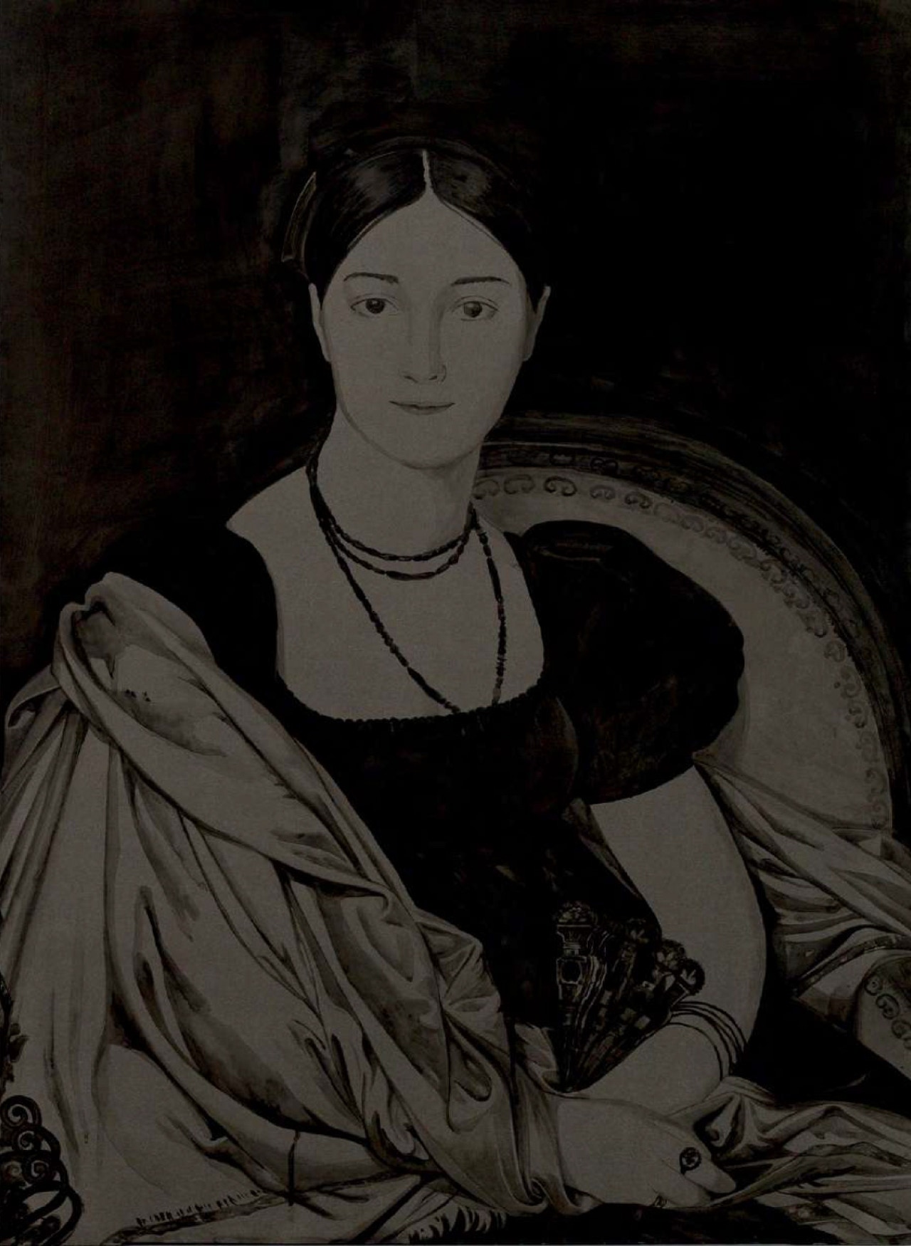 Madame Moitessier, 2020-2024, Acrylic on iridescent canvas, 120 x 92 cm.