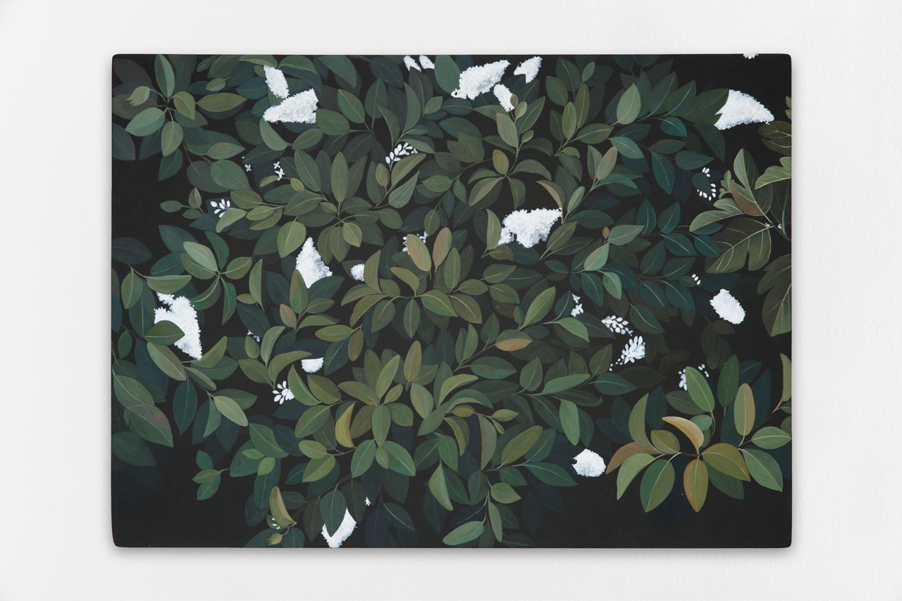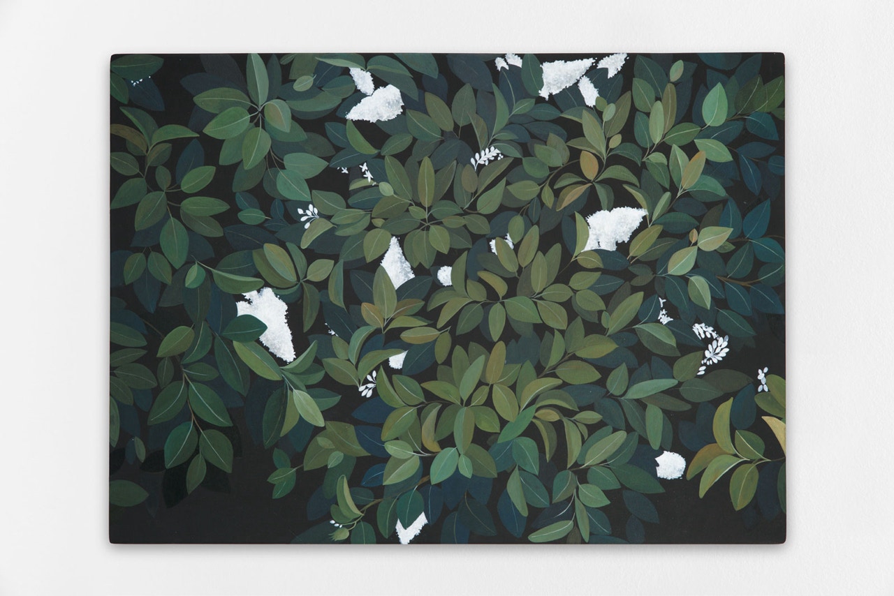 Feuillages 3, 2024, Acrylic and oil on wood panel, 73 x 100cm.