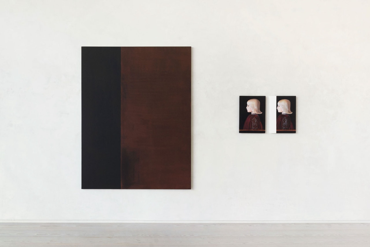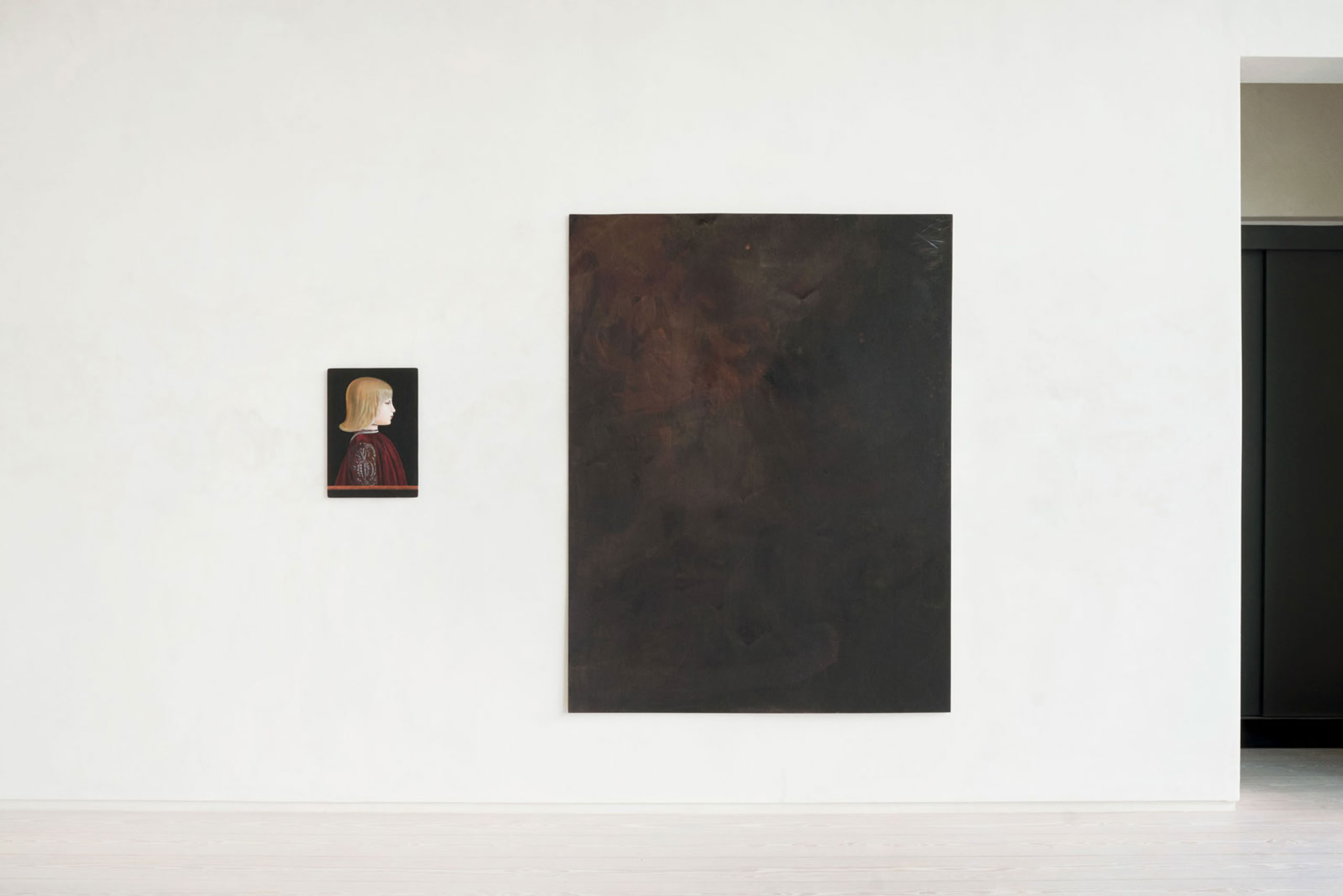 Single twin, 2024, Acrylic on wooden panel, 50 x 36 cm + Fantôme, 2024, Acrylic on panel, 195 x 150 cm.