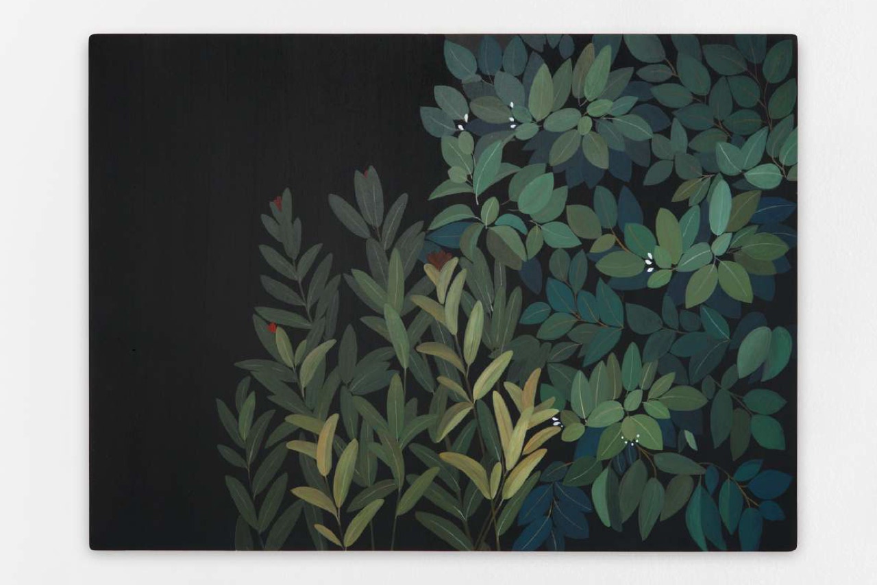Feuillages 1, 2024, Acrylic and oil on wood panel, 73 x 100cm.