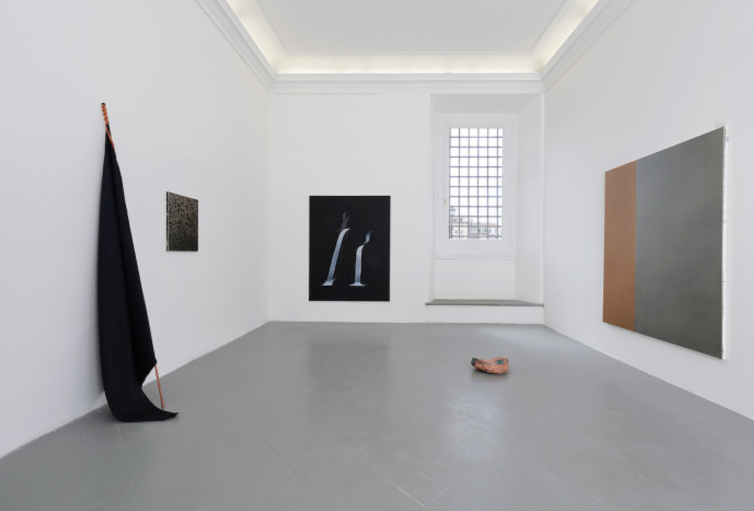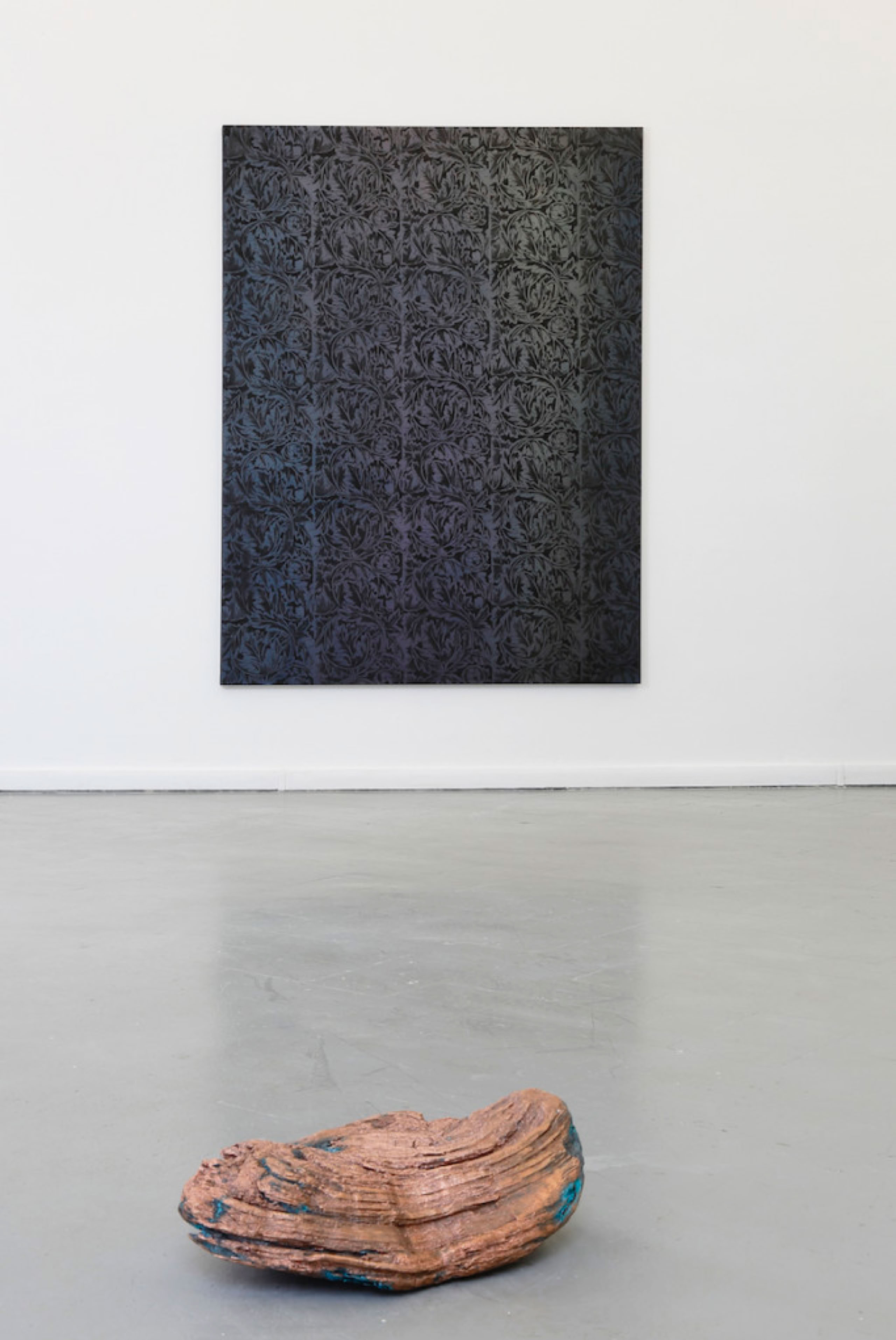 Installation view: After Morris, 195 x 150 cm, acrylic on canvas, and copper rock.