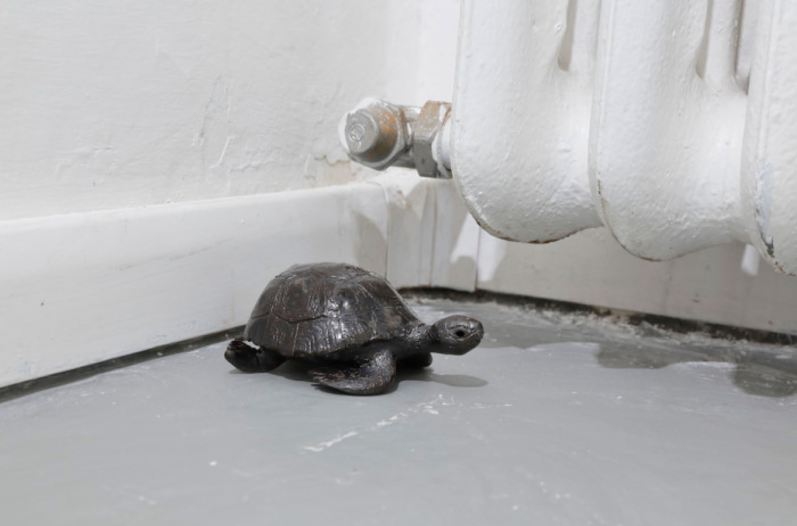 Installation view (detail), ceramic turtle.