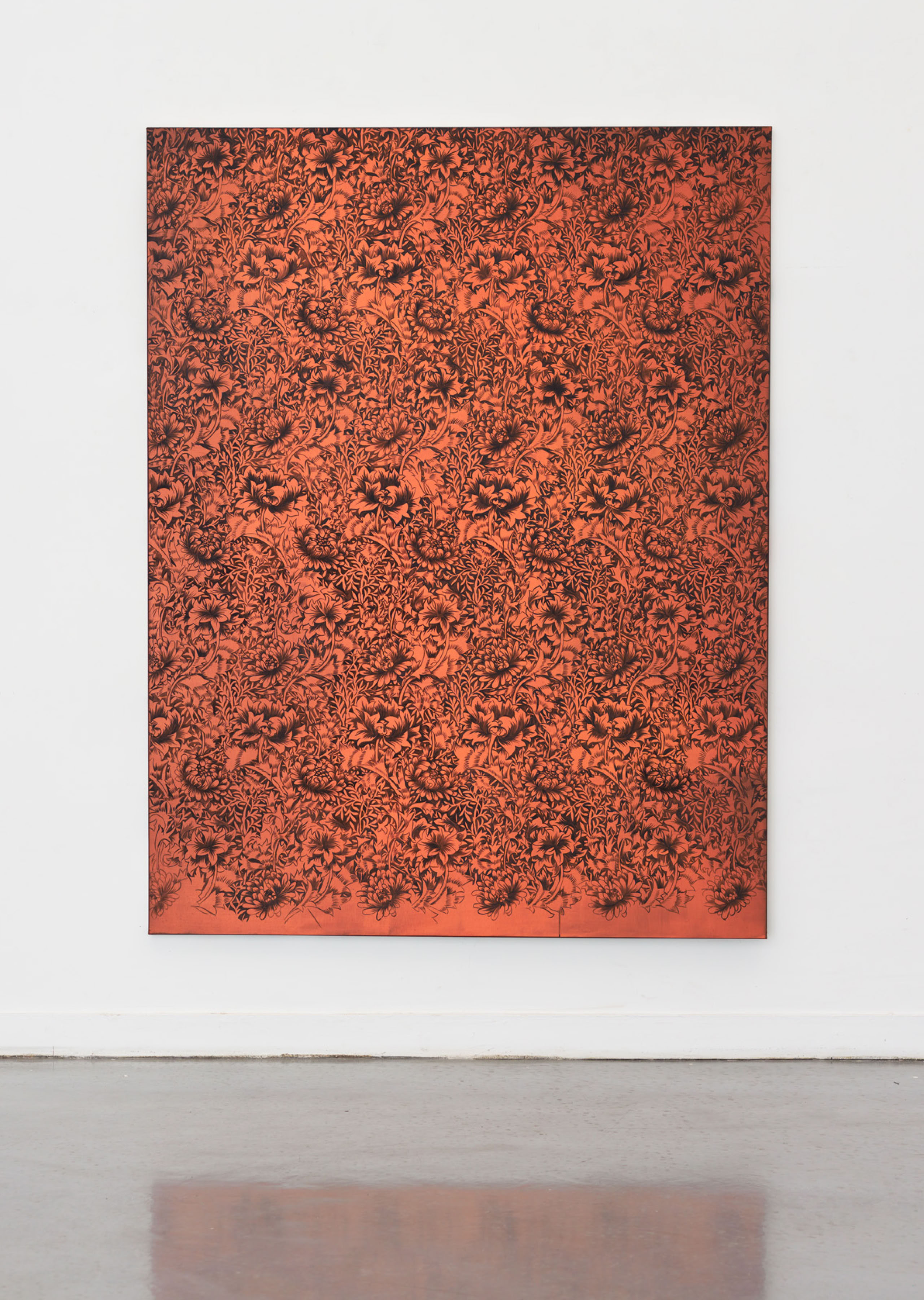 Copper Floral, acrylic on canvas, 195 x150 cm.