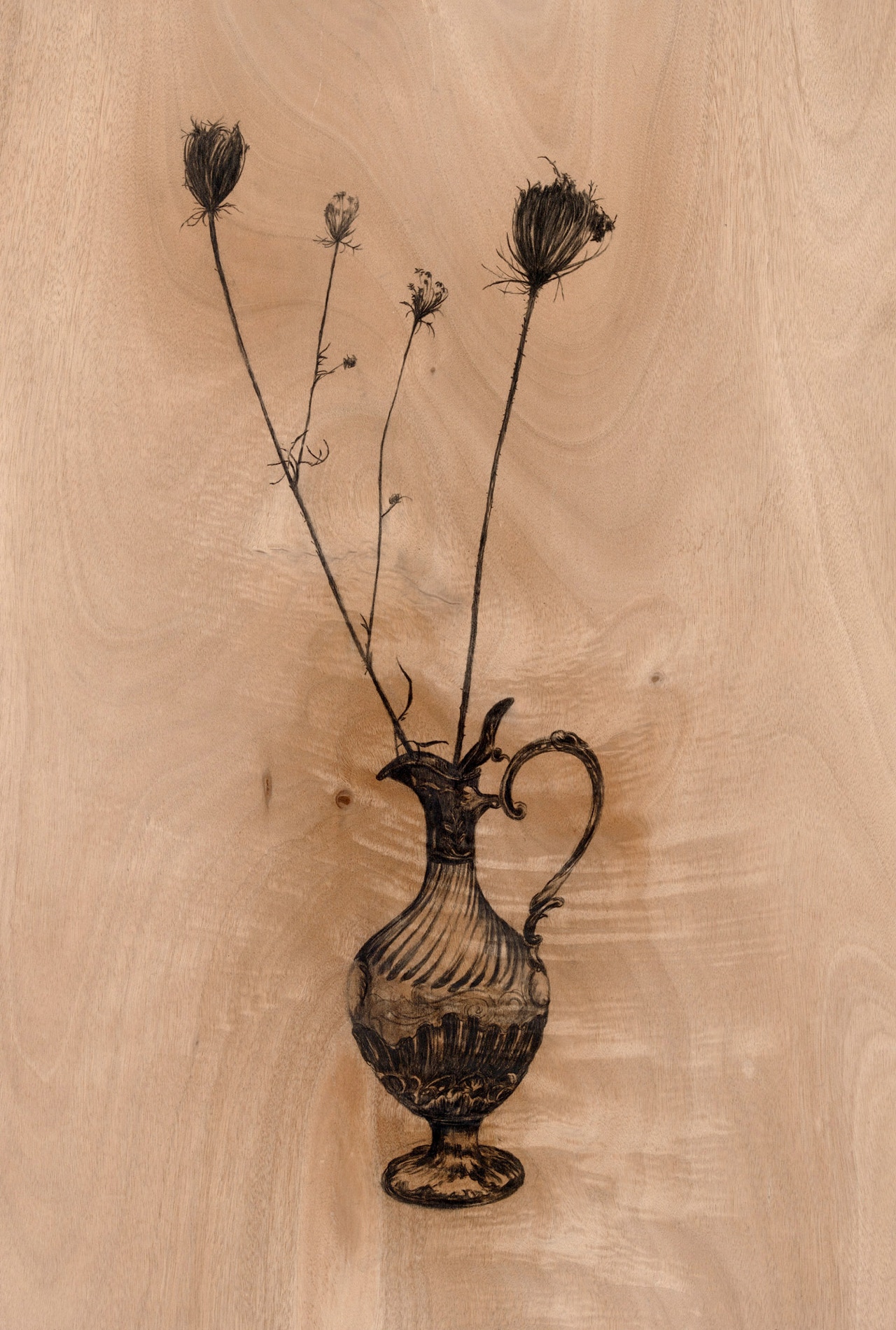 Still Life, charcoal on wood panel, 100 x 70cm.