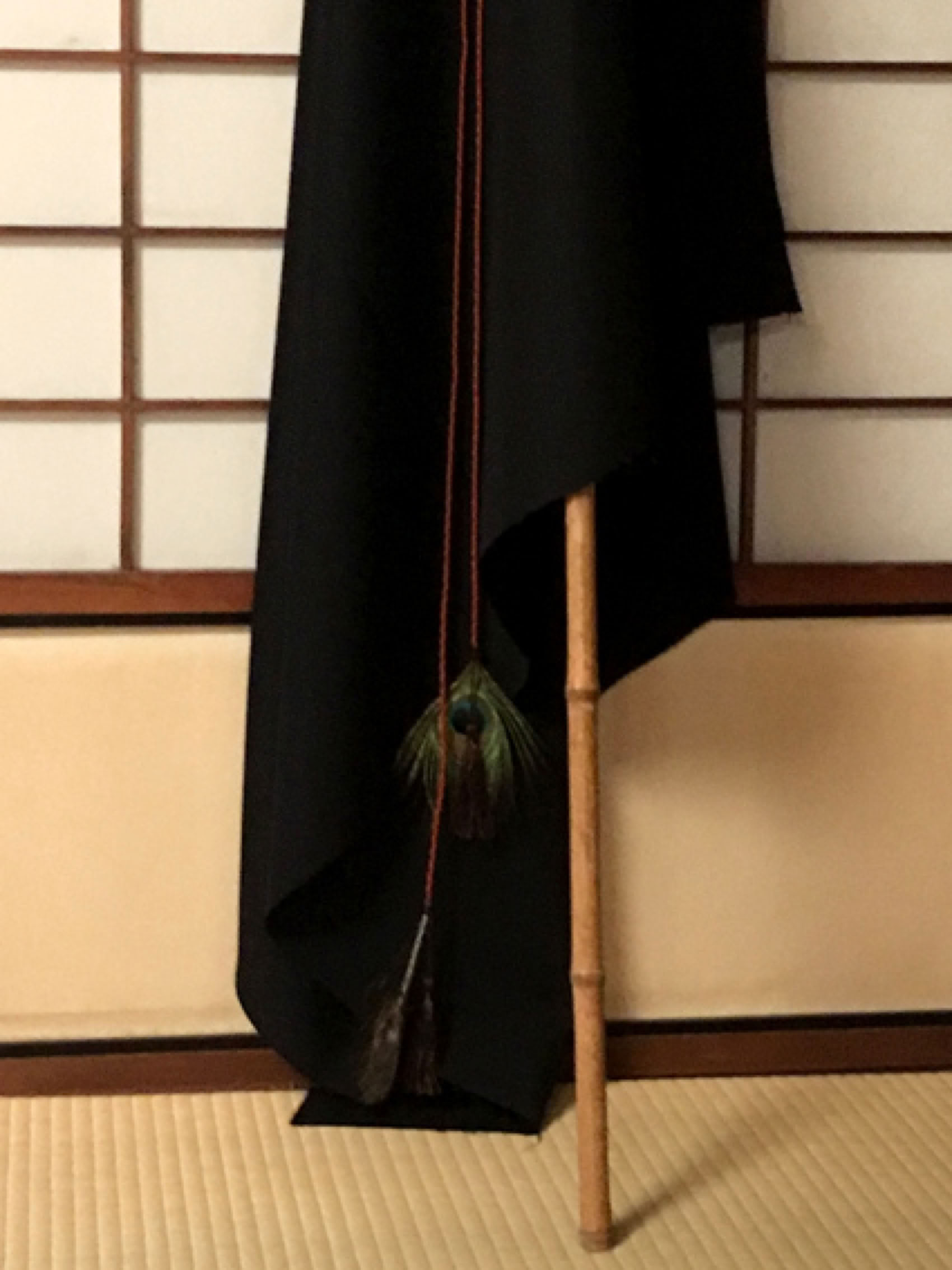 Flag (detail) with a peacock feather.